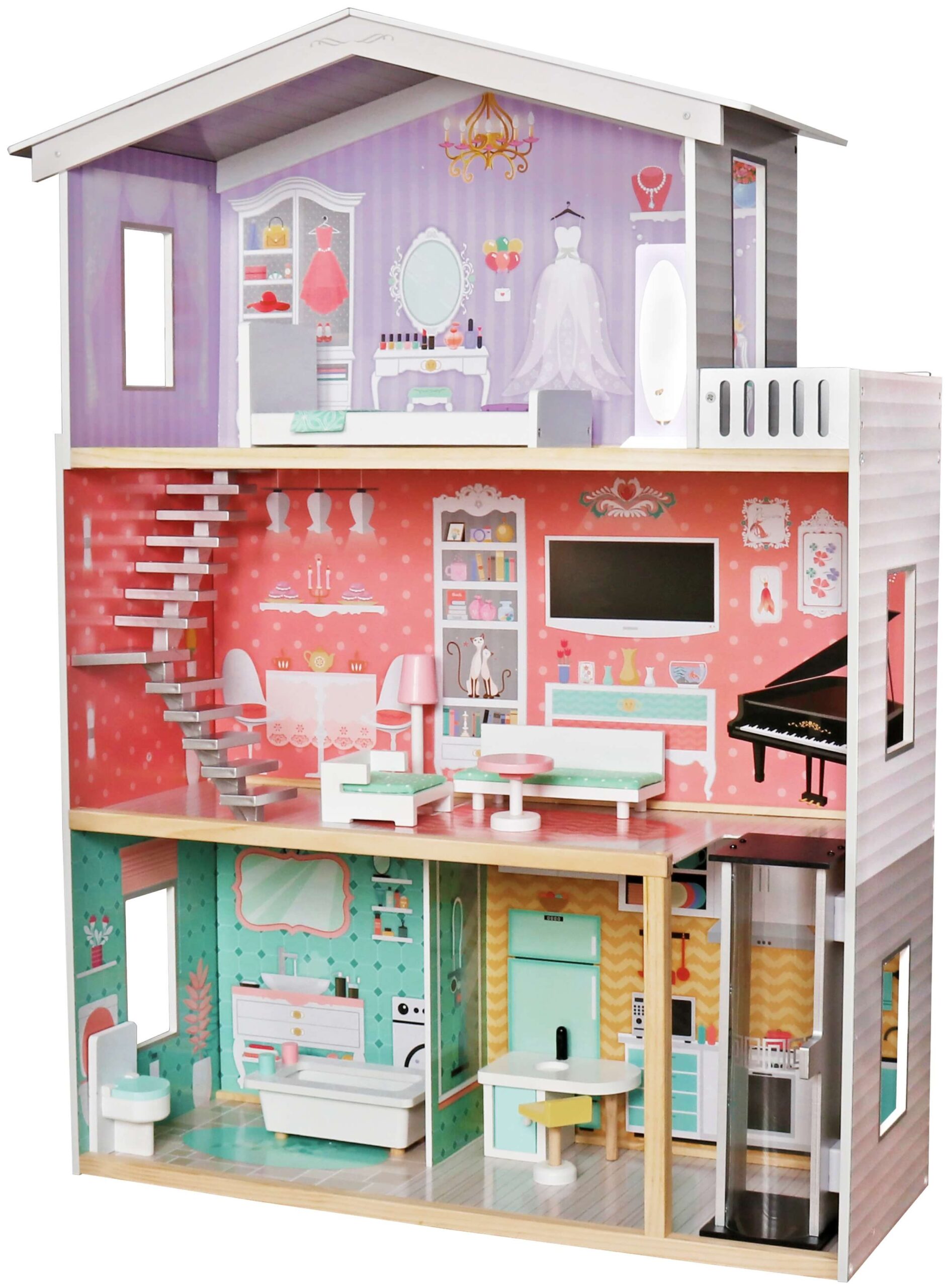 Κουκλόσπιτο Joyland Pastel, σε μοντέρνες pastel αποχρώσεις στο φόντο, με 3 μεγάλους ορόφους, ασανσέρ και σκάλα, μπάνιο, σαλόνι, κουζίνα, υπνοδωμάτιο, μπαλκόνι και με όλα τα απαραίτητα έπιπλα και αξεσουάρ για να επιπλώσει το παιδί σας τον κάθε χώρο όπως του αρέσει. – Μοντέρνες pastel αποχρώσεις με όμορφο φόντο σε κάθε δωμάτιο – Υψηλή ποιότητας κατασκευής