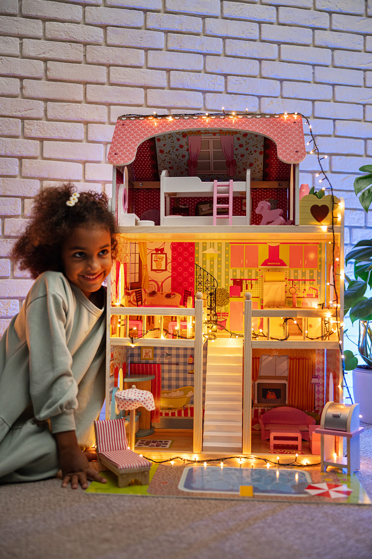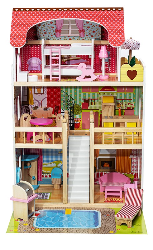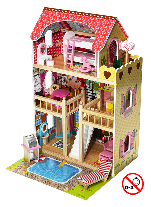 Το κουκλόσπιτο Joyland Sunshine θα βοηθήσει τα παιδιά σας να καλλιεργήσουν και να αναπτύξουν την δημιουργικότητά τους, χάρη στις αμέτρητες επιλογές διαρρύθμισης των χώρων με τα έπιπλα και αξεσουάρ που διαθέτει. Χωρίζεται σε 3 ορόφους, με πισίνα στην αυλή, μπάνιο, σαλόνι, τραπεζαρία, κουζίνα, υπνοδωμάτιο και μπαλκόνι. – Μοντέρνες ζωηρές αποχρώσεις με όμορφο φόντο σε κάθε δωμάτιο – Υψηλή ποιότητας κατασκευής