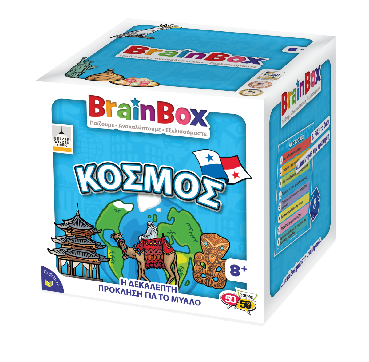 Εξερεύνησε όλες τις χώρες του κόσμου από το σπίτι σου! Διάλεξε μια κάρτα μέσα από το BrainBox. Αναποδογύρισε την κλεψύδρα και προσπάθησε να μάθεις απ'έξω την κάρτα σε 10 δευτερόλεπτα! Τώρα ρίξε το ζάρι και απάντησε στην αντίστοιχη ερώτηση. Αν απαντήσεις σωστά κρατάς την κάρτα, αν απαντήσεις λάθος βάζεις την κάρτα πάλι μέσα στο BrainBox. Σκοπός του παιχνιδιού: Μάζεψε τις περισσότερες κάρτες μέσα σε 10 λεπτά. Περιέχονται: 55 κάρτες 1 κάρτα με κανόνες 1 κλεψύδρα 1 ζάρι