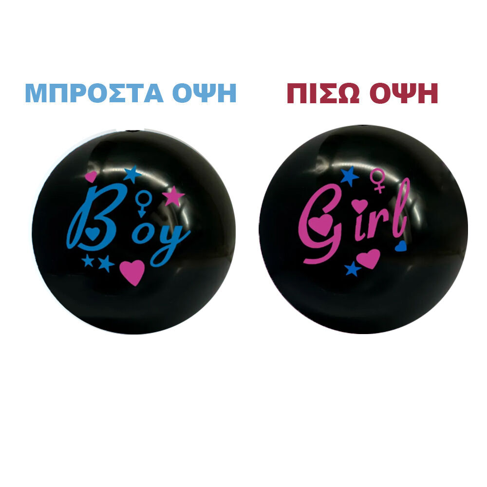 Μπάλα Μαύρη Gender Reveal Boy or Girl με Γαλάζια Πούδρα