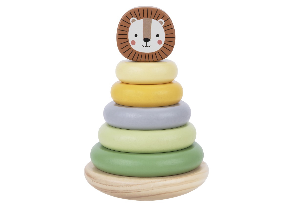 Ένα πολύχρωμο παιχνίδι στοίβαξης, από τα κλασικά εκπαιδευτικά παιχνίδια Μοντεσσόρι, που έχει σχεδιαστεί ειδικά για παιδιά βρεφικής και προσχολικής ηλικίας. Στοιβάζοντας τις πολύχρωμες ροδέλες τη μία πάνω στην άλλη, τα παιδιά αναπτύσσουν την ικανότητα συντονισμού χεριών – ματιών, τις λεπτές κινητικές ικανότητές τους, μαθαίνουν τα χρώματα, τα σχέδια, όπως επίσης να μετρούν και να αναγνωρίζουν σχήματα. Αποτελείται από 7 κομμάτια και απευθύνεται σε παιδιά άνω των 18 μηνών. Περιέχει 1 φιγούρα που απεικονίζει ένα λιοντάρι και μπαίνει στην κορυφή του πύργου, 5 πολύχρωμες ροδέλες και 1 στρογγυλή βάση.