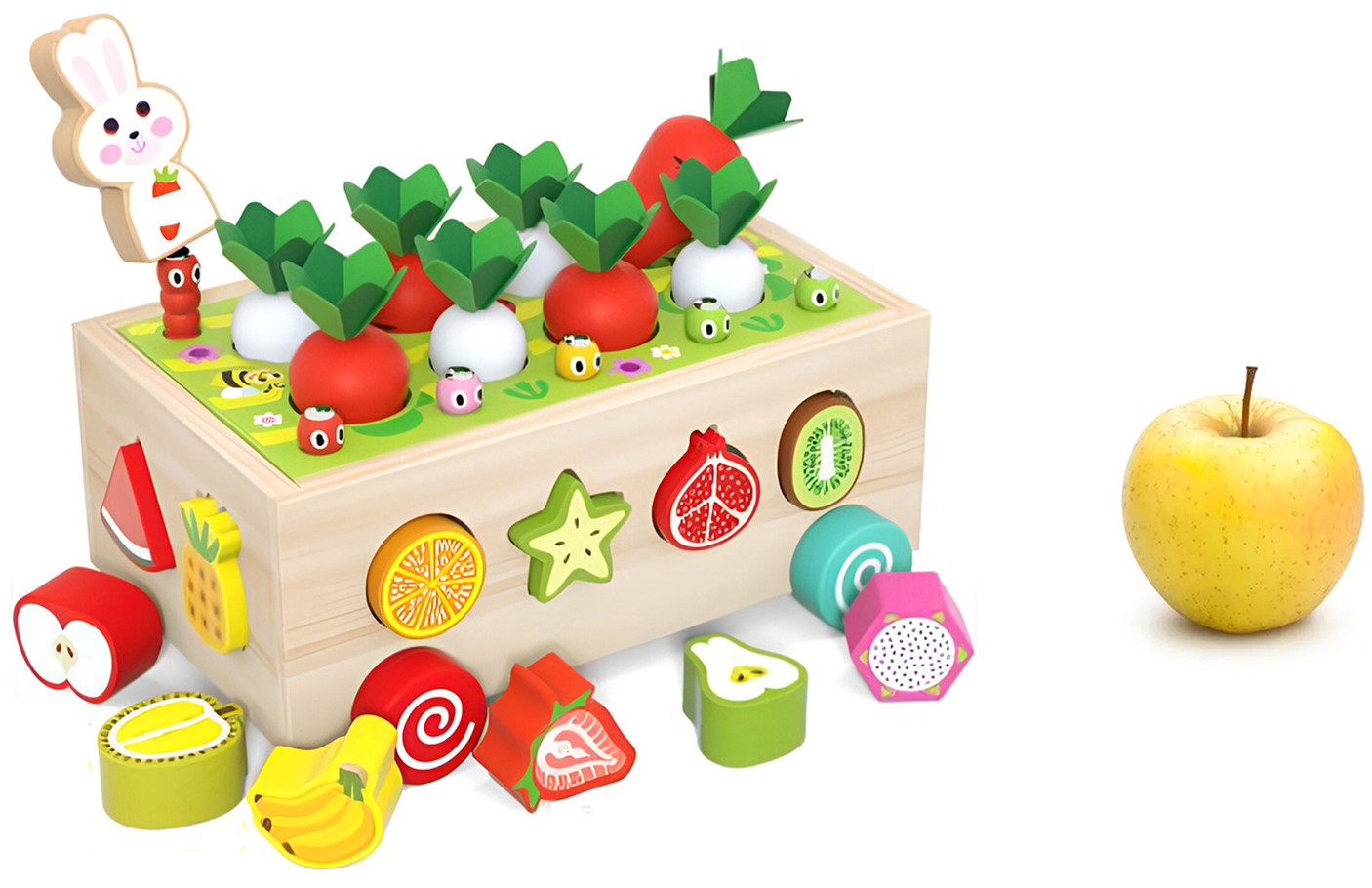 Το παιδικό παζλ με φρούτα Joyland Fruity είναι σχεδιασμένο για να διεγείρει τις αισθήσεις και την ανάπτυξη των παιδιών.Τα παιδιά μαθαίνουν να ταξινομούν τα φρούτα ανάλογα με το σχήμα και το μέγεθος τους, τοποθετώντας τα στις σωστές τρύπες. Αυτό βοηθά στην ανάπτυξη των λεπτών κινητικών δεξιοτήτων, του συντονισμού χεριού-ματιού και της αναγνώρισης σχημάτων και χρωμάτων. -Υψηλή ποιότητα κατασκευής