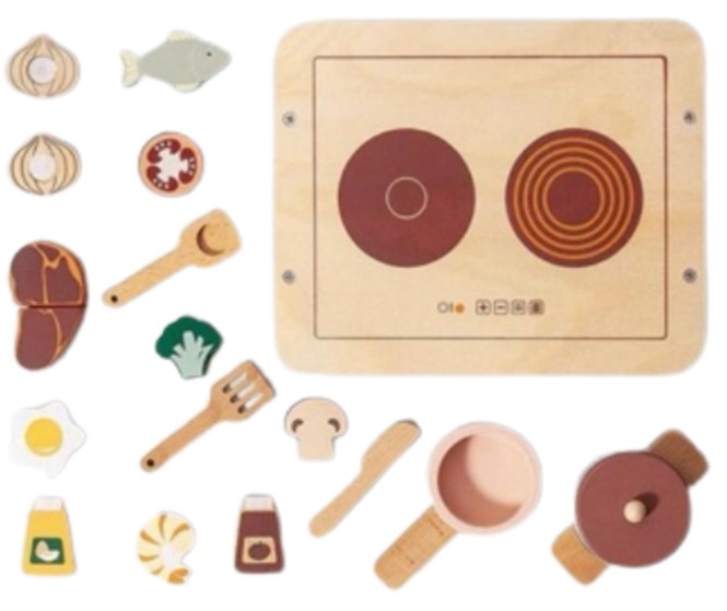 Το παιδικό σετ μαγειρικής με εστίες Joyland Hotplate είναι ένα εκπαιδευτικό παιχνίδι ιδανικό για να ενθαρρύνει τη φαντασία και τη δημιουργικότητα των μικρών σεφ. Το σετ περιλαμβάνει μια ξύλινη κουζίνα με εστίες μαγειρέματος, διάφορα μαγειρικά σκεύη όπως κατσαρόλες, τηγάνι, κουτάλα και σπάτουλα, καθώς και ξύλινα τρόφιμα όπως κρέας, ψάρι, λαχανικά και φρούτα. Τα τρόφιμα είναι κομμένα σε κομμάτια για να μπορούν τα παιδιά να τα συνδυάσουν και να τα μαγειρέψουν. Τα παιδιά μπορούν να μιμηθούν τις ενέργειες των μεγάλων στην κουζίνα, μαγειρεύοντας, σερβίροντας και φτιάχνοντας διάφορα πιάτα. Αυτό το παιχνίδι ενθαρρύνει την φαντασία, τη δημιουργικότητα και την ανάπτυξη των κοινωνικών δεξιοτήτων -Υψηλή ποιότητα κατασκευής
