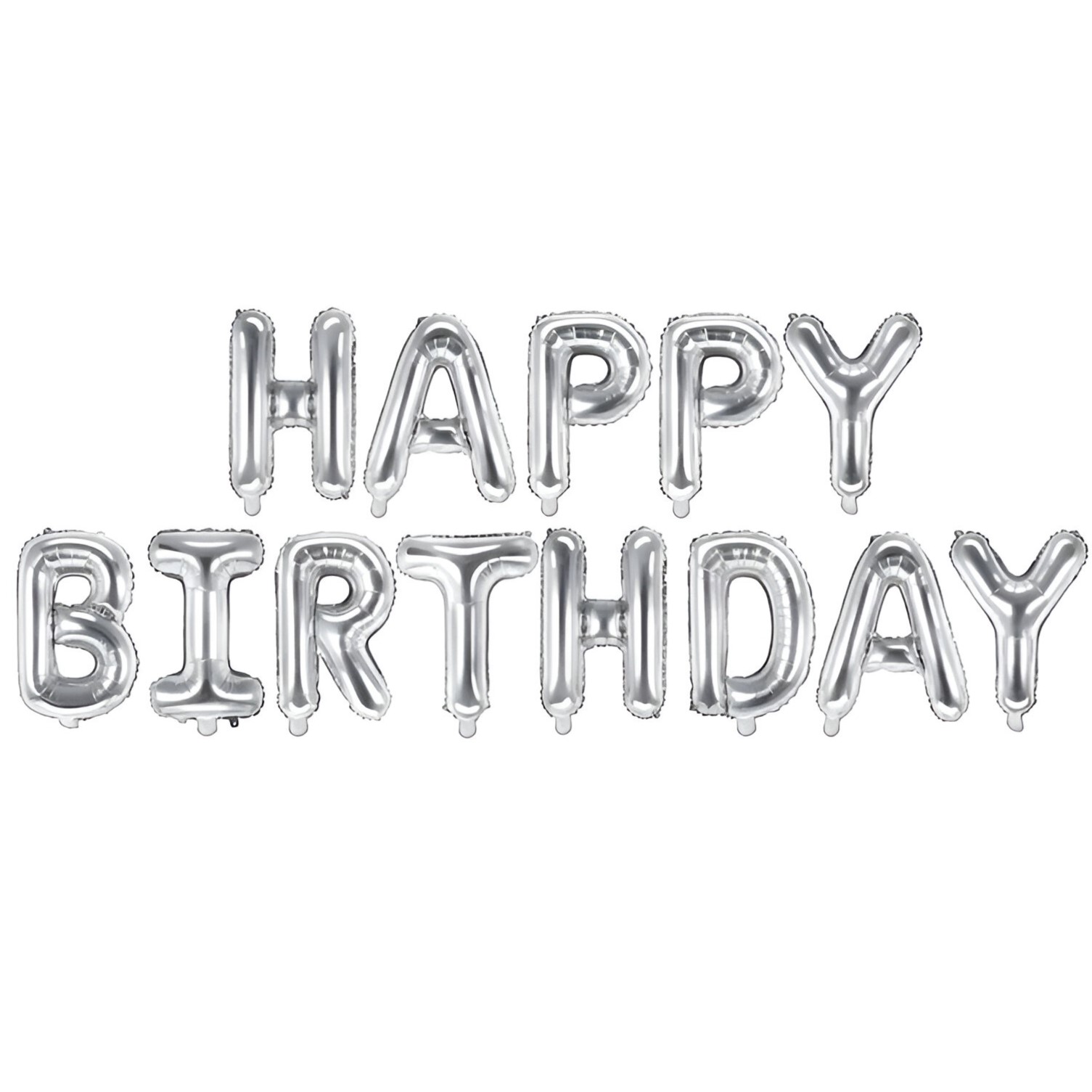 Σετ Μπαλόνια Γενεθλίων -“Happy Birthday” Ασημί (13 τεμ)