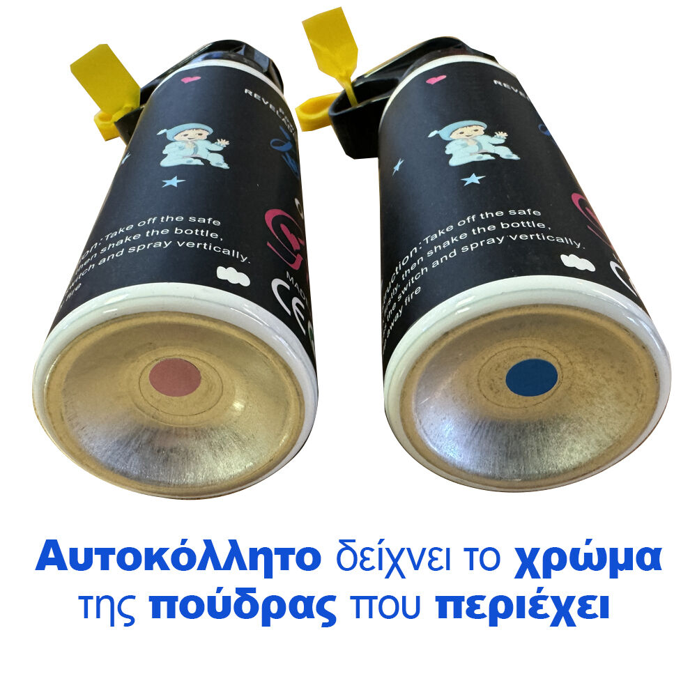 Η πολύχρωμη πούδρα σε σπρέι είναι πλέον γεγονός. Δώστε χρώμα στην εκδήλωσή σας με το νέο color powder spray. Κατά προτίμηση σε ανοιχτό χώρο ψεκάστε την πολύχρωμη πούδρα προς τα επάνω. Μπορείτε να χρησιμοποιήσετε το σπρέι της πολύχρωμης πούδρας στο Gender reveal πάρτυ σας αποκαλύπτοντας το φύλο του παιδιού σας με αυτό τον ιδιαίτερο τρόπο. Επισήμανση, το χρώμα της πούδρας που περιέχεται σε κάθε σπρέι δε είναι διακριτό, παρά μόνο στο κάτω μέρος του κάθε σπρέι που υπάρχει μια διακριτική ένδειξη ροζ ή γαλάζια ανάλογα. Έτσι η έκπληξη δεν θα χαλάσει. Χρησιμοποιήστε color powder spray σε κάθε καλοκαιρινό πάρτυ και color party.Τα νέα σπρέι χρωματιστής πούδρας δε μπορούν να λείπουν από κανένα νεανικό πάρτυ.