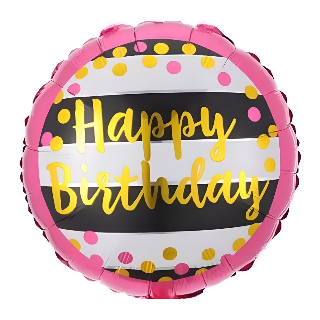 18″ Μπαλόνι Γενεθλίων Ριγέ Pink Dots