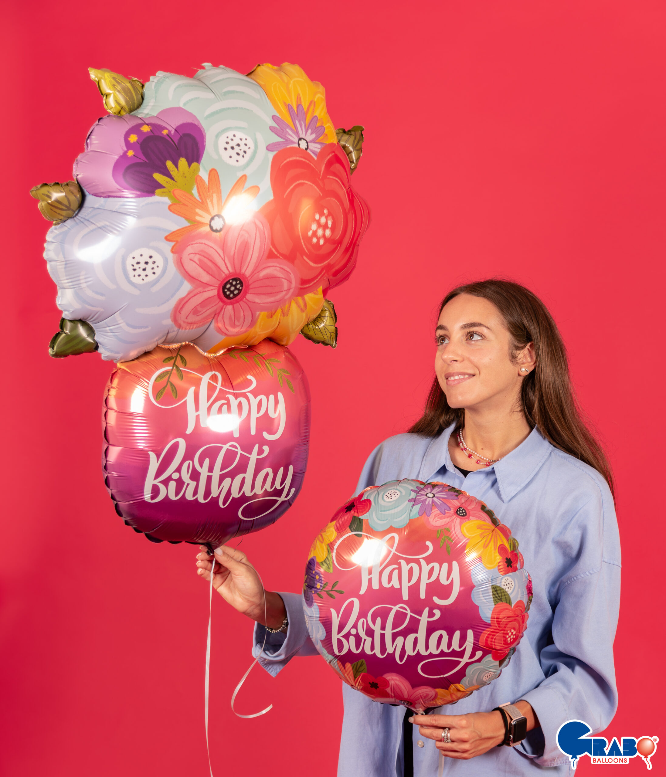 Μπαλόνι γενεθλίων με μήνυμα Happy Birthday και σχέδιο όμορφα Ανοιξιάτικα λουλούδια!