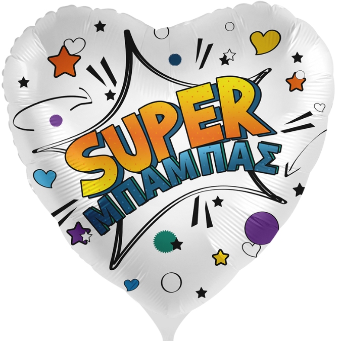 Μπαλόνι καρδιά με μήνυμα “‘SUPER ΜΠΑΜΠΑΣ”. Ιδανικό για να το χαρίσεις στον αγαπημένο σου μπαμπά και να τον κάνεις να νιώσει ξεχωριστός!