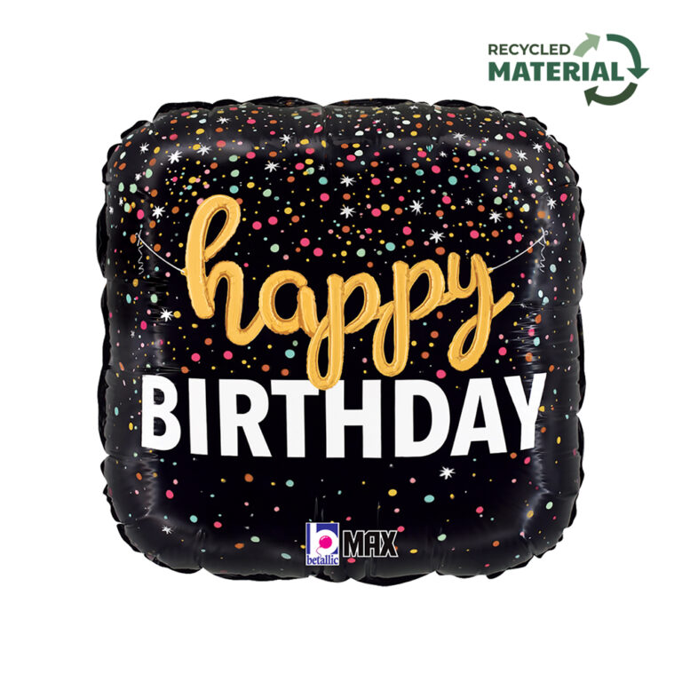 18″ Μπαλόνι Τετράγωνο Γενεθλίων Script Confetti
