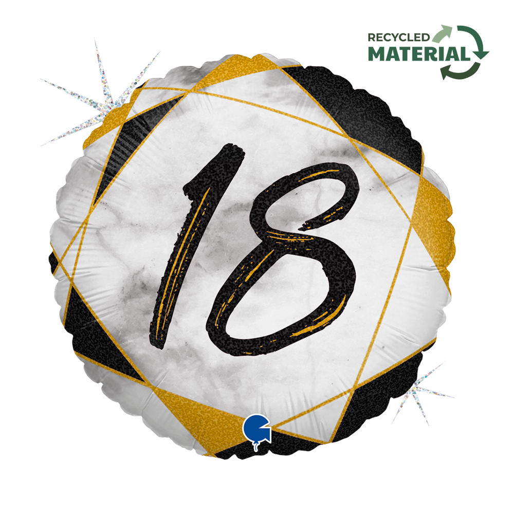 Στρογγυλό μπαλόνι για τα 18α γενέθλια με σχέδιο μάρμαρο! Μια όμορφη ιδέα για διακόσμηση πάρτυ ή για δώρο στον εορτάζοντα!