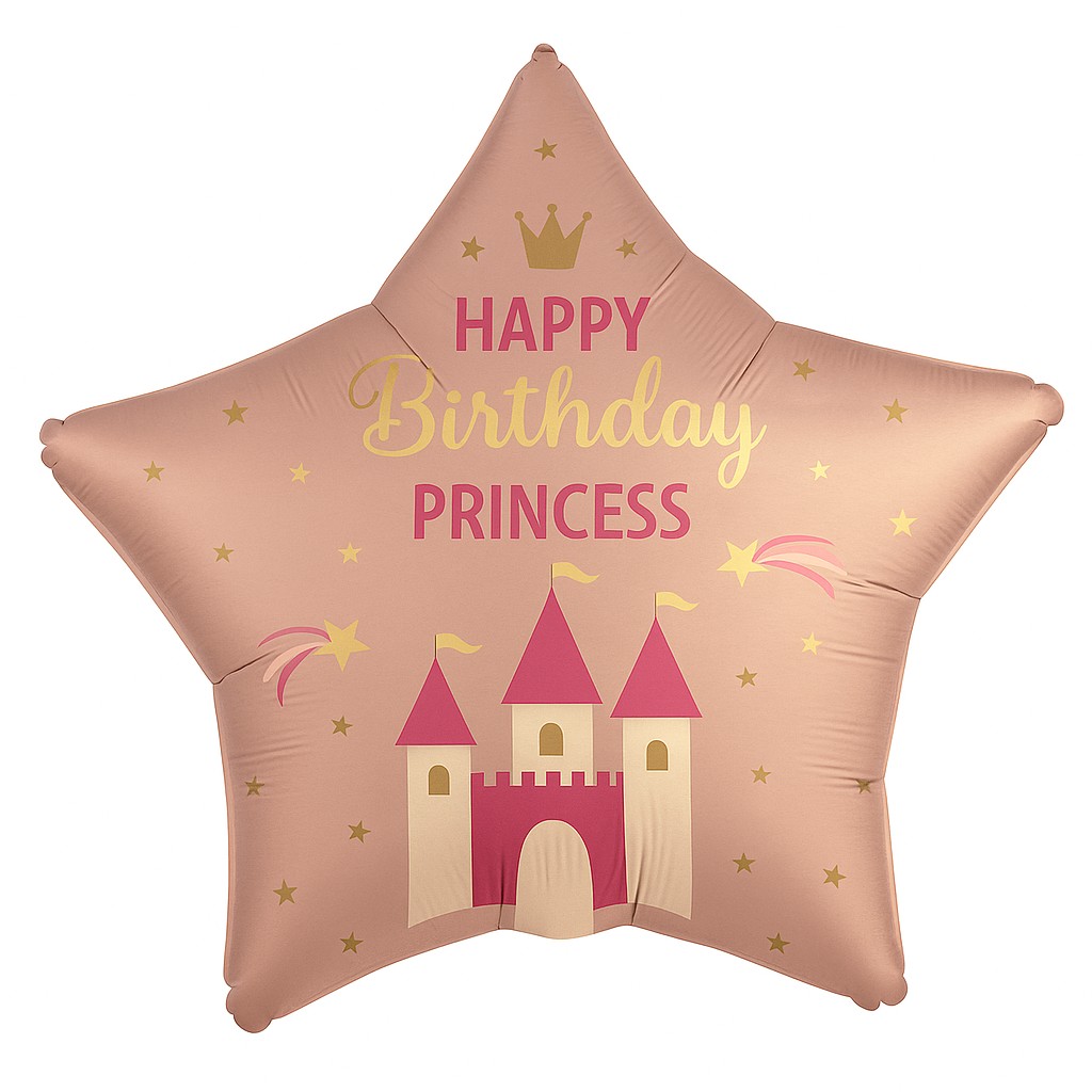 Γυαλιστερό foil μπαλόνι με μήνυμα ‘’Happy Birthday Princess” σε ροζ απόχρωση.