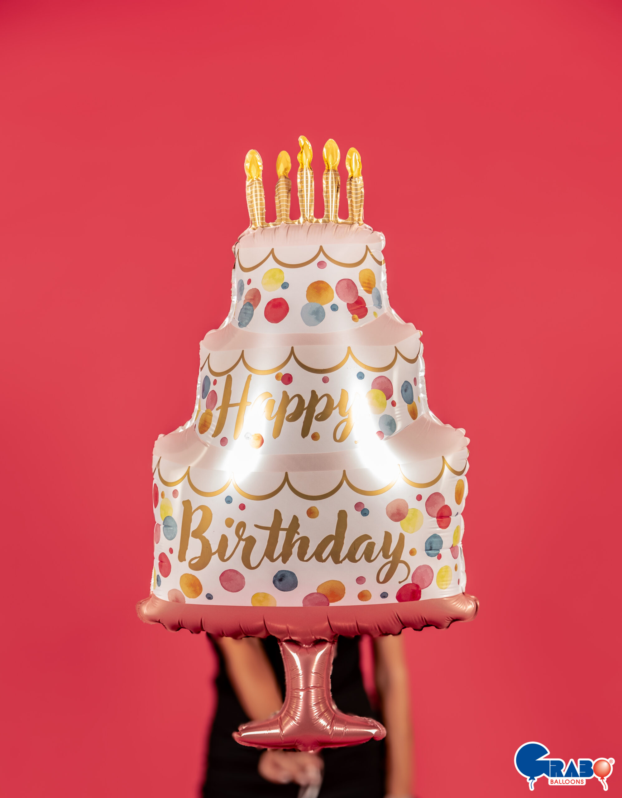 Μπαλόνι τούρτα γενεθλίων με μήνυμα Happy Birthday σε ροζ αποχρώσεις, για μια μοναδική διακόσμηση στο πάρτυ!