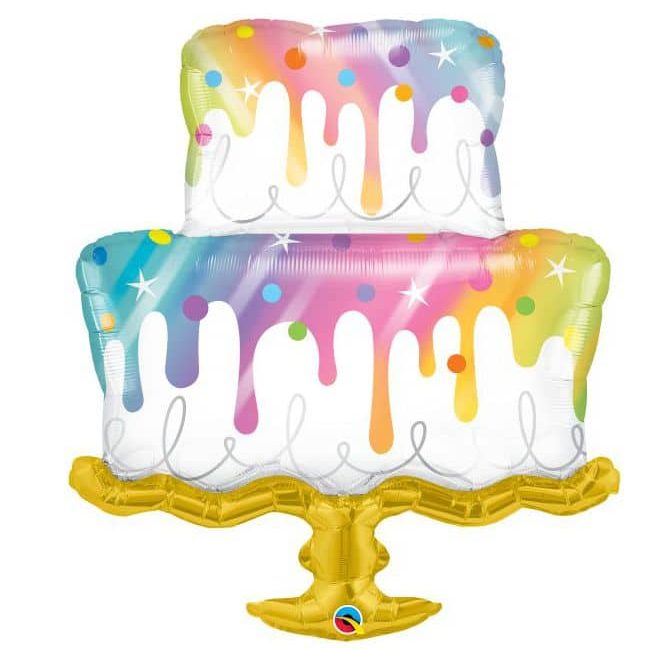 Μεγάλο, foil, σχηματικό μπαλόνι με Τούρτα Γενεθλίων και Rainbow χρωματισμούς για μία εντυπωσιακή διακόσμηση πάρτι!