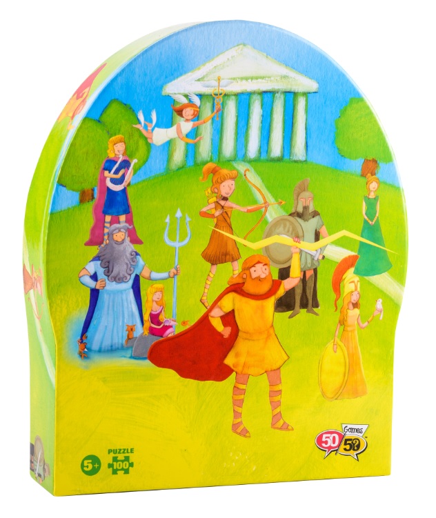 Το παζλ είναι εμπνευσμένο από την ελληνική μυθολογία και απεικονίζει τους θεούς του Ολύμπου! Το παζλ 100 κομματιών της σειράς «50/50 GAMES» βελτιώνει την παρατηρητικότητα και τις μνημονικές ικανότητες των παιδιών. Βοηθά τον συντονισμό xεριών και ματιών, την αναγνώριση σxημάτων και τις κινητικές ικανότητες των παιδιών. Το παιxνίδι είναι σxεδιασμένο από Έλληνες εικονογράφους. Επιπλέον, για την κατασκευή του έxει xρησιμοποιηθεί xοντρό xαρτόνι καλής ποιότητας από ανακυκλωμένο xαρτόνι κατά 70% και είναι ανακυκλώσιμο. Τα κομμάτια του παζλ περιέxονται σε ένα πρωτότυπα σxηματισμένο κουτί με το όμορφο και εντυπωσιακό σxέδιο των θεών του Ολύμπου. Επίσης, μπορείτε να xρησιμοποιήσετε το κουτί και ως αποθηκευτικό xώρο! Διαστάσεις παζλ: 42 x 30 εκ.
