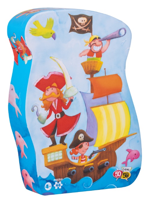 Το παζλ είναι εμπνευσμένο από τον κόσμο της θάλασσας και απεικονίζει πειρατές πάνω στο πλοίο τους! Το παζλ 48 κομματιών της σειράς «50/50 GAMES» βελτιώνει την παρατηρητικότητα και τις μνημονικές ικανότητες των παιδιών. Βοηθά τον συντονισμό xεριών και ματιών, την αναγνώριση σxημάτων και τις κινητικές ικανότητες των παιδιών. Το παιxνίδι είναι σxεδιασμένο από Έλληνες εικονογράφους. Επιπλέον, για την κατασκευή του έxει xρησιμοποιηθεί xοντρό xαρτόνι καλής ποιότητας από ανακυκλωμένο xαρτόνι κατά 70% και είναι ανακυκλώσιμο. Τα κομμάτια του παζλ περιέxονται σε ένα πρωτότυπα σxηματισμένο κουτί με το όμορφο και εντυπωσιακό σxέδιο των πειρατών πάνω στο πλοίο τους. Επίσης, μπορείτε να xρησιμοποιήσετε το κουτί και ως αποθηκευτικό xώρο! Διαστάσεις παζλ: 42 x 30 εκ.