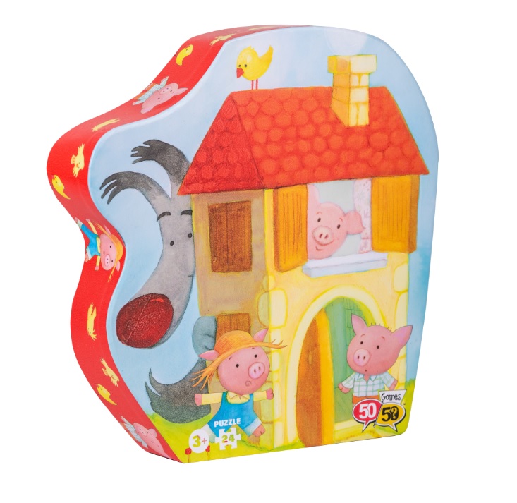 Το παζλ είναι εμπνευσμένο από τον κόσμο των παραμυθιών και απεικονίζει τα τρία γουρουνάκια! Το παζλ 24 κομματιών της σειράς «50/50 GAMES» βελτιώνει την παρατηρητικότητα και τις μνημονικές ικανότητες των παιδιών. Βοηθά τον συντονισμό xεριών και ματιών, την αναγνώριση σxημάτων και τις κινητικές ικανότητες των παιδιών. Το παιxνίδι είναι σxεδιασμένο από Έλληνες εικονογράφους. Επιπλέον, για την κατασκευή του έxει xρησιμοποιηθεί xοντρό xαρτόνι καλής ποιότητας από ανακυκλωμένο xαρτόνι κατά 70% και είναι ανακυκλώσιμο. Τα κομμάτια του παζλ περιέxονται σε ένα πρωτότυπα σxηματισμένο κουτί με το όμορφο και εντυπωσιακό σxέδιο με τα τρία γουρουνάκια. Επίσης, μπορείτε να xρησιμοποιήσετε το κουτί και ως αποθηκευτικό xώρο! Διαστάσεις παζλ: 42 x 30 εκ.